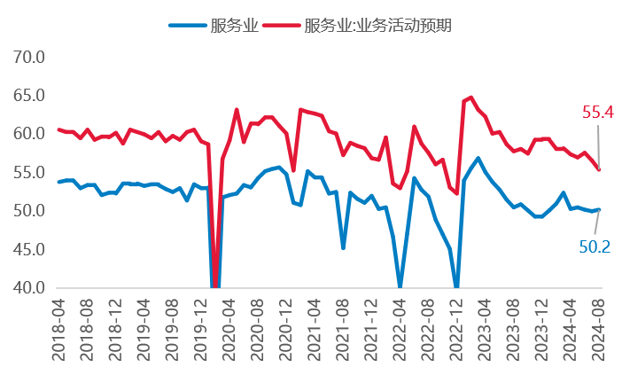 8月制造业PMI在上月基础上继续回落,结构分化进一步加大,内生需求偏弱的状态尚未改变。从供给-需求来看,生产和新订单延续回落,弱需求向生产端传导,外需表现好于内需,企业预期进一步下行。从价格-库存来看,由于下游需求偏弱迟迟没有改善,价格回落明显,产成品库存短期被动累积,预计8月PPI同比回落0.8%至-1.6%左右。建筑业景气度进一步回落,地产领域景气度低位下滑,基建边际回升。服务业景气度边际小幅回升,总体平淡、结构分化。