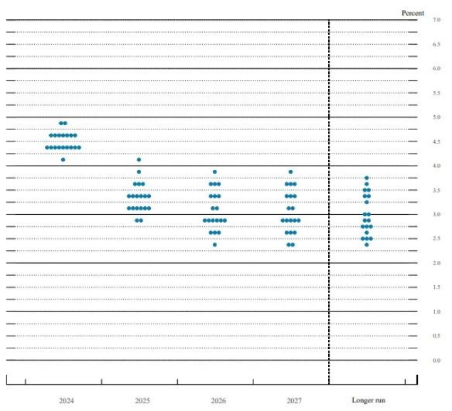 通过分析美联储最新公布的点阵图来看,在此次降息基础上,到今年年底还将再降息0.5%,未来2025年全年再降息1%,2026年再降息0.5%。总体而言,点阵图显示基准利率未来中期利率目标将维持在2.75%~3%区间。换言之,在没有出现系统性经济衰退的情况下,美联储不会像过去那样实施超宽松的零利率。