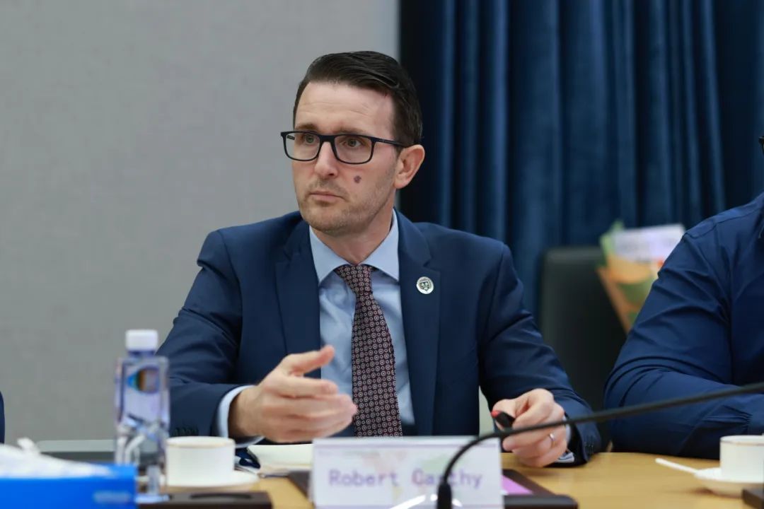 罗伯特·卡蒂谈到,诺森比亚大学在校本科生如获得一等学位,毕业有机会获得学校直博的机会。双方探讨了诺森比亚大学直博的政策和博士学制、授课方式、论文等情况。同时讨论了优秀学生案例,以及我校去往诺森比亚大学深造学生的后续反馈。