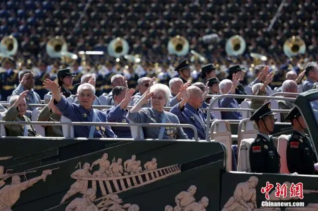 2015年9月3日,中国人民抗日战争暨世界反法西斯战争胜利70周年纪念大会在北京隆重举行。这是抗战老兵乘车方队通过天安门广场。79年,硝烟散去,山河重振。这段无数先辈用血泪写就的峥嵘岁月,这些忠诚担当、顽强奋斗的傲骨英魂,我们不能忘,不敢忘,不会忘。今天,我们致敬先辈、致敬那场伟大的胜利更提醒你我: