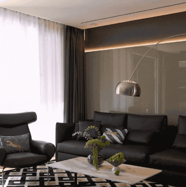 户型最早为四居室,后来被改为两间套房。原本空间与空间之间较为闭塞,Boloni设计师通过改造多功能间、增加镂空柜体、线性光源,让空间与空间之间形成呼吸感。