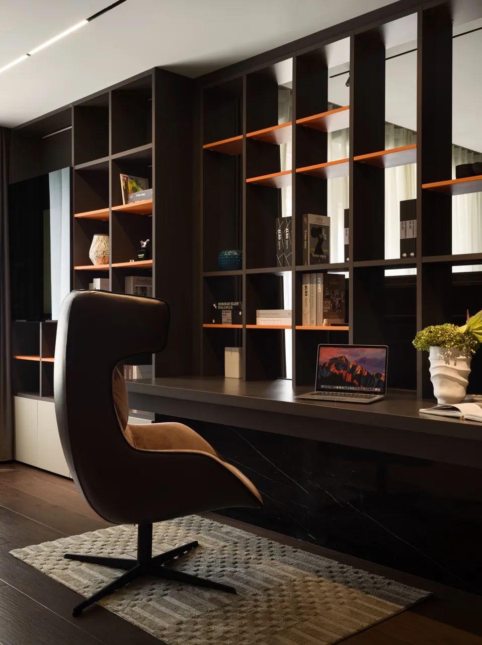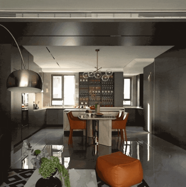 如果要形容这套房给人的感受,那就像是诸橙拿铁,它有着爱马仕橙一般的华贵、惹人注目,又有着咖啡一般的深沉和内敛。