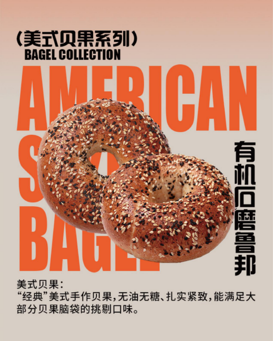 美式贝果:经典美式手作贝果,无糖无油、扎实紧致,能满足大部分贝果脑袋挑剔的口味。