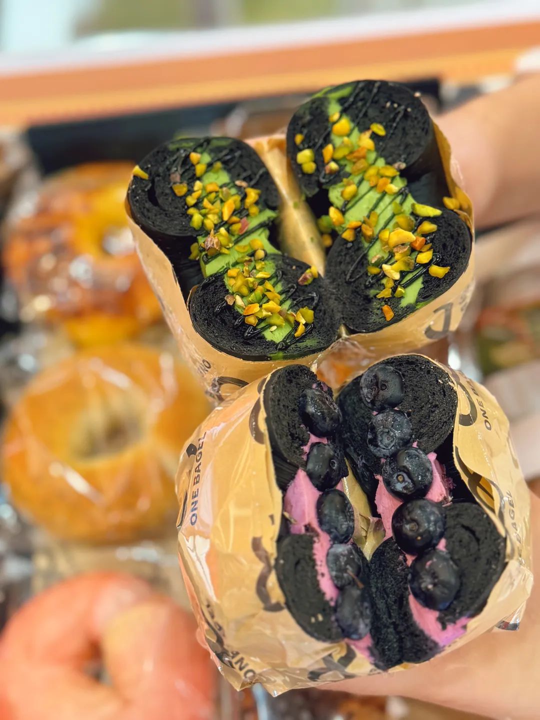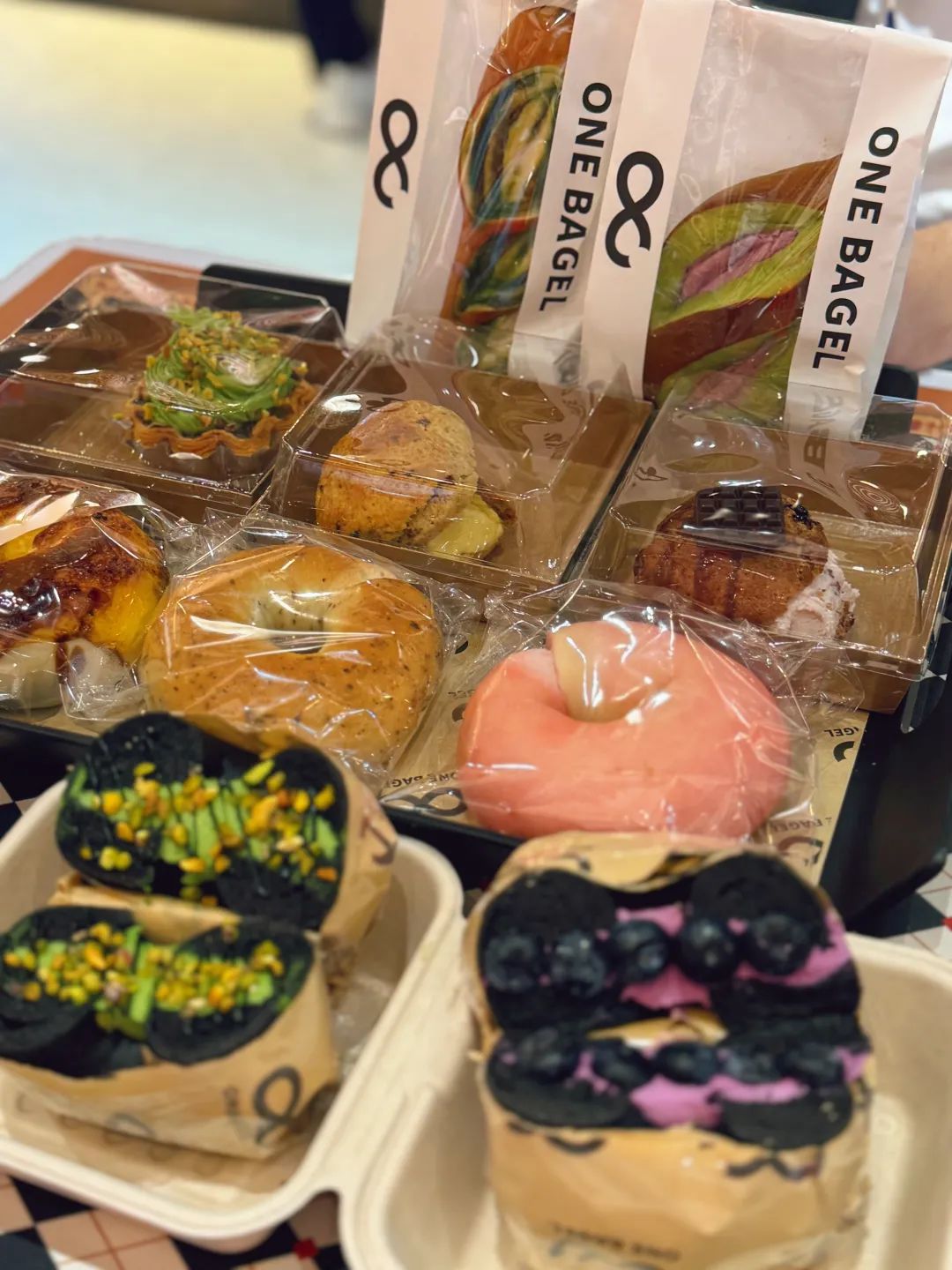 —— ONE BAGEL·一个贝果,是国内贝果潮玩烘焙新品牌,新派贝果+咖啡的新型模式,将年轻人的趣味文化符号融入产品研发中,致力于让都市年轻人体验健康美味、好吃好玩的贝果。