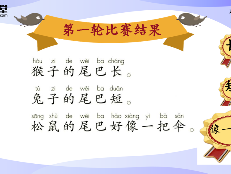 图:小学部一年级语文《比尾巴》AI课件识字成体系