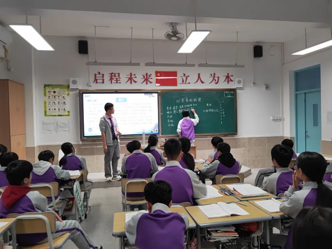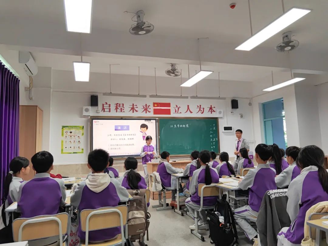 统编教材七年语文第六单元《皇帝的新装》第二课时,杨灿文老师调动学生的自主学习兴趣,课前三分钟复述《皇帝的新装》。内容是用自己的方式复述故事,林旭睿同学不仅复述了内容,还分析了人物形象和作者的写作目的;林佩珊复述内容,表达清晰流畅,也分享了自己的学习心得,达成很不错的演讲学习效果。