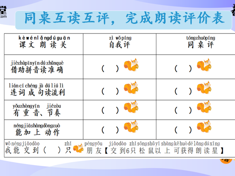 一年级语文:李斌老师和谢梦烨老师的共学结构中,在小组合作中主要侧重于学生一起朗读课文,一边梳理课文内容,有利于激发学生对语文学科的学习兴趣,培养学生 。