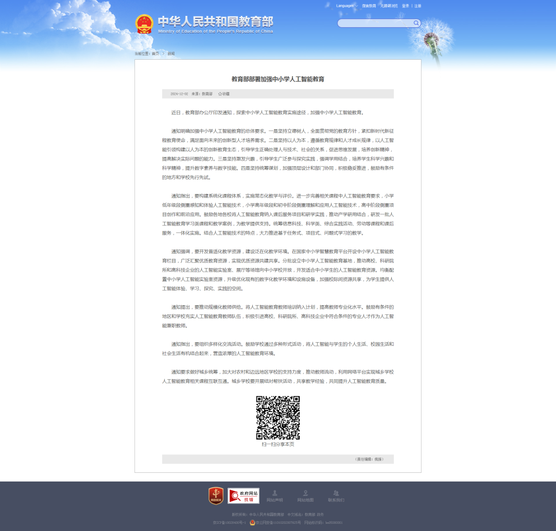 教育部布署AI教育方向