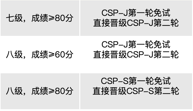 GESP最高两级7-8级考试大纲与CSP-J/S(全国信息学奥林匹克竞赛)基本吻合,因此可以由GESP等级认证衔接CSP-J/S,并获得免初赛资格,能够有效衔接更高层次的竞赛,且是全国目前唯一打通CSP-J/S的编程能力等级认证