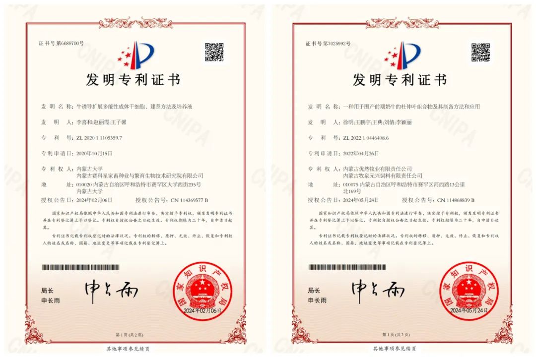 另一项引人注目的专利是“牛诱导扩展多能性成体干细胞、建系方法及培养液”。建立的这种干细胞可以实现特殊功能基因定点、高效敲除、敲入,可以实现“富含乳铁蛋白、无乳糖、高蛋白等”特殊性状新品系种牛培育及基因编辑生物育种。而该研究成果的推广和应用,有望进一步优化优然牧业乃至整个行业牛群的遗传基因,并持续改良行业牛群整体遗传品质,同时也将极大提升优然牧业种业板块的可持续核心竞争力。