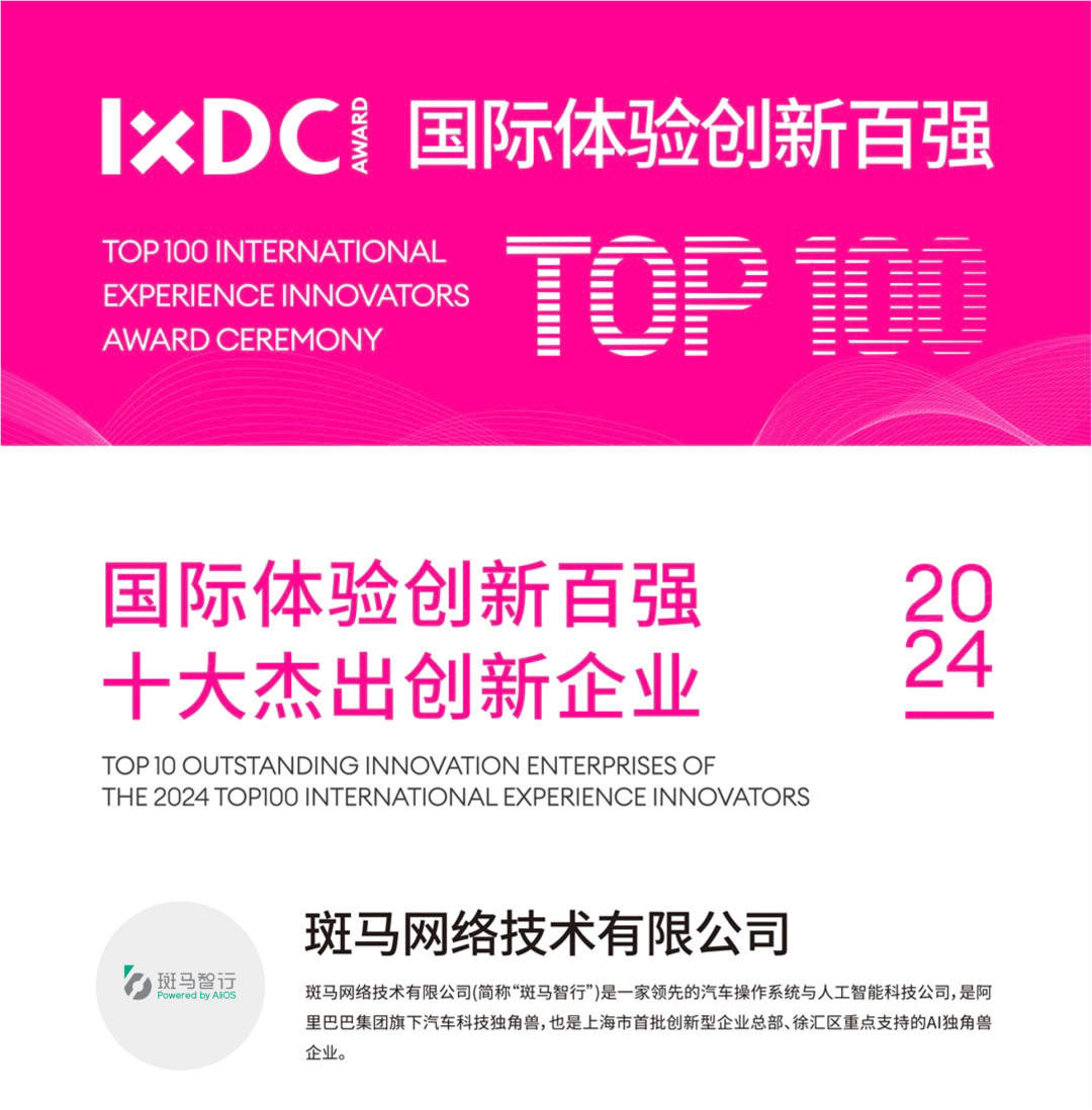 IXDC AWARD|国际体验创新百强十大杰出创新企业证书当前,智能驾驶技术带来的产品体验逐渐趋同,基于AI大模型的智能座舱,能够带来交互变革与服务重塑,正在成为体验差异化的关键。