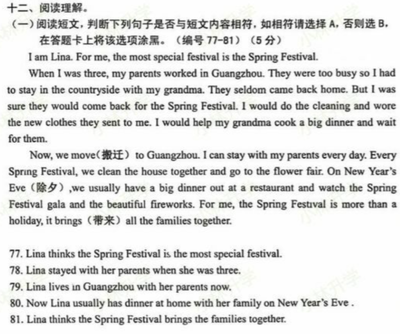 本次期末英语考题,想轻易拿满分已经成为过去式。阅读融入中国传统文化,词汇量明显提升,对学生的语言应用能力要求提高。传统的死记硬背单词课文的学习方式,很明显已经无法通往高分之路,提升综合语言应用能力才是关键。