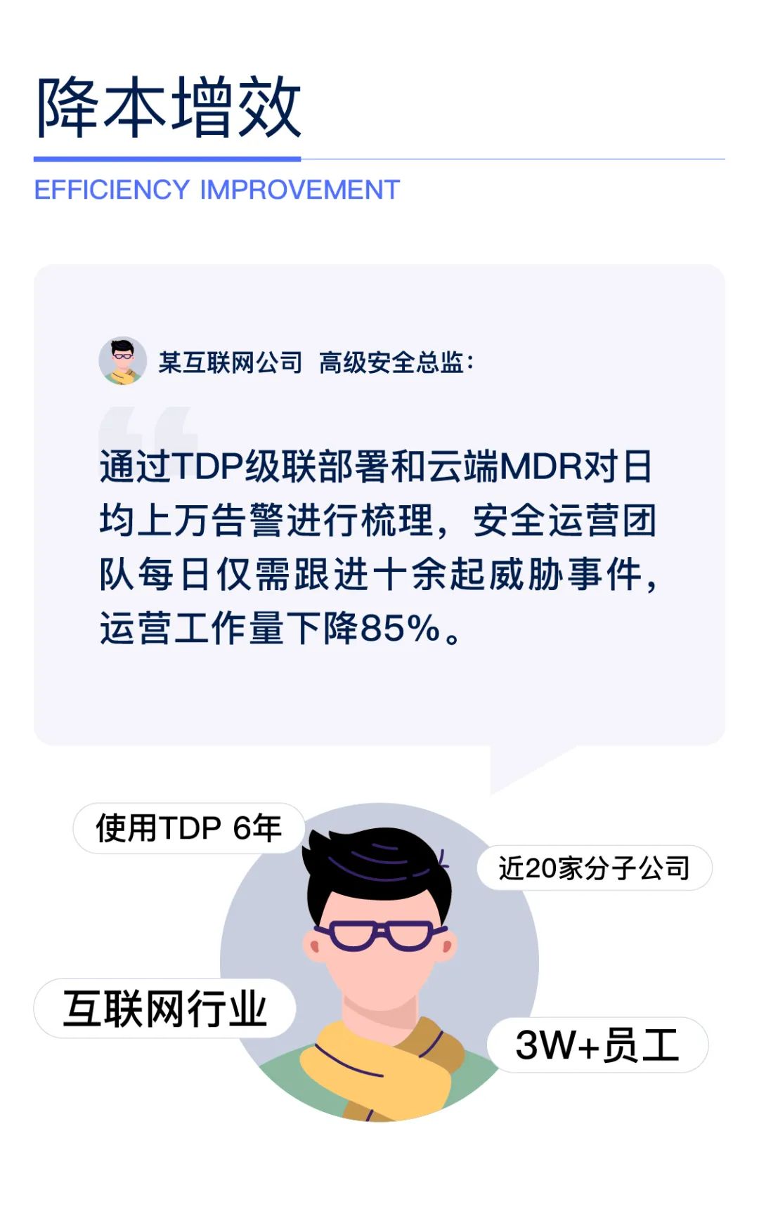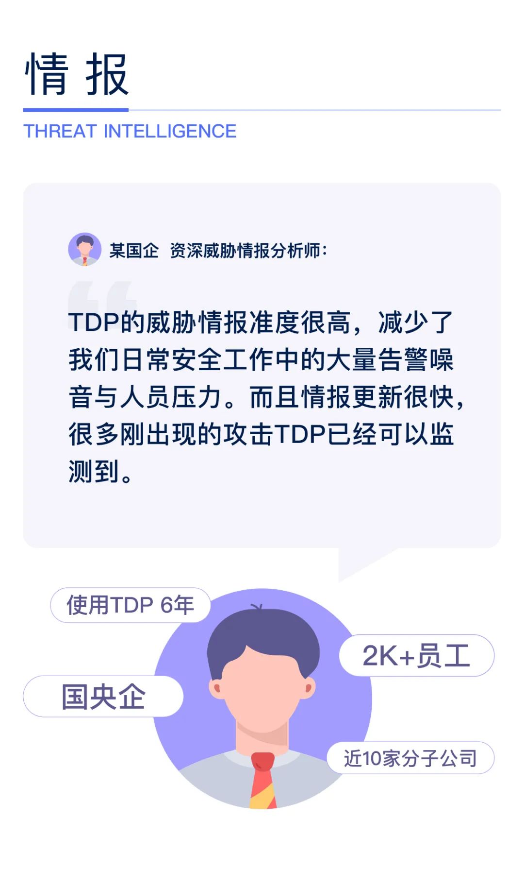 我们当时抱着试一试的态度使用了TDP,但最后的使用体验却大大超出了我们的预期,安全告警非常准确,大大降低了我们企业的管理成本。