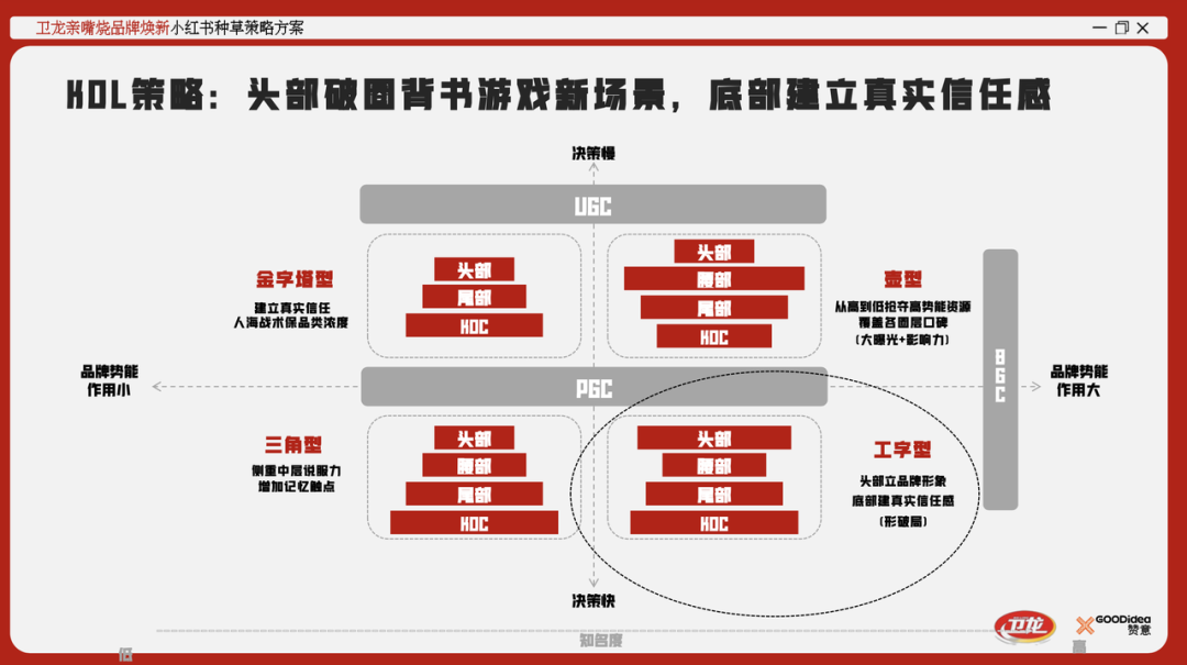 在KOL选择上,结合产品特性选择生活向+美食向KOL,投放重头部和尾部,形成“工字形”策略。其中头部KOL权威背书,帮助卫龙建立有公信力的品牌形象、提升品牌认知度,尾部KOL则重在和用户“玩在一起”,建立真实的信任感,促进辣条“情绪价值”的口碑发酵。