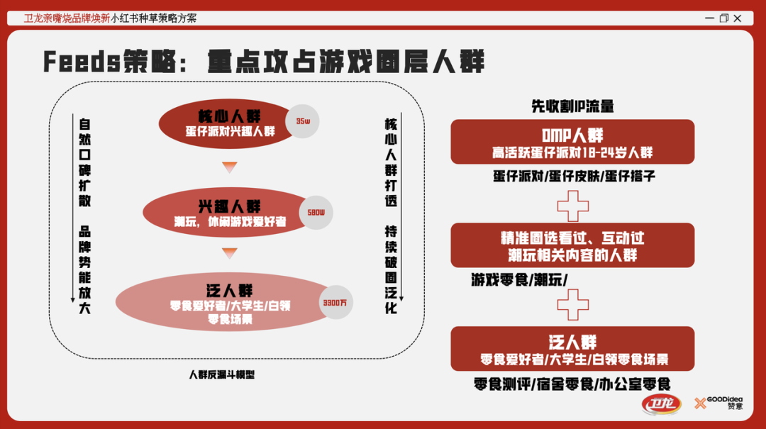 于是,赞意为卫龙选择小红书平台作为心智营销的主平台,就成了一件自然而然的事情。那么,如何找到契合年轻人的营销形式?那就是和他们玩在一起,赞意提出将游戏赛道作为机会场景,渗透游戏圈层人群。