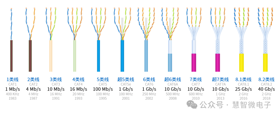 进入2000年之前,五类线(CAT5)诞生,支持100MHz传输信号带宽,实现了100Mb/s的传输速率,成为数字信号有线传输的重要里程碑。