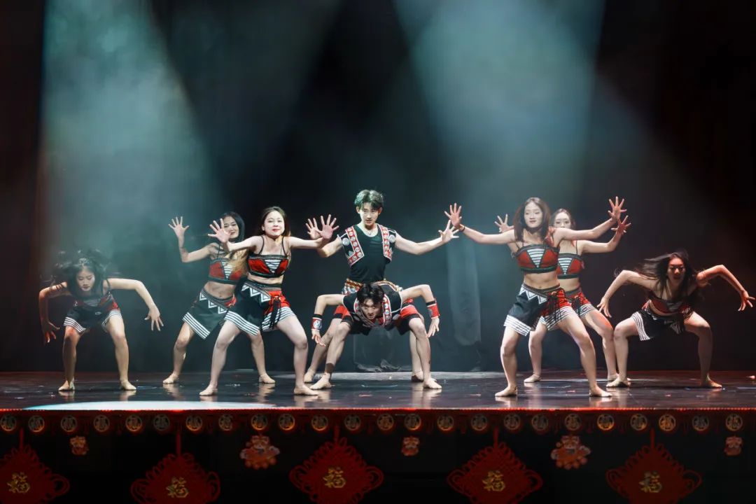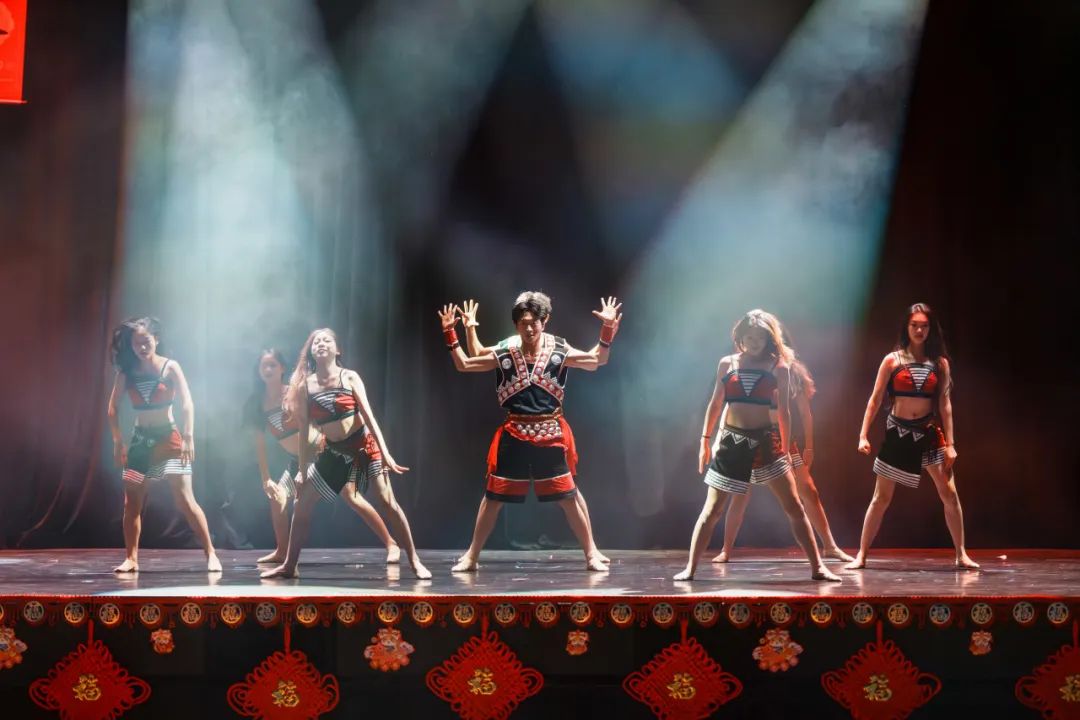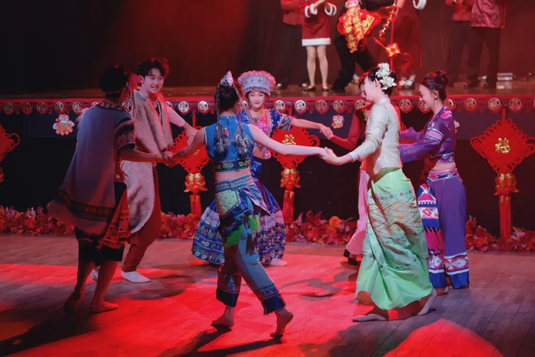 舞台上,昆明传媒学院星辰艺术团带来了佤族风情舞蹈《司岗里》。舞者们身着色彩斑斓、绚丽夺目的佤族服饰,每一个动作都刚劲有力,每一道眼神皆饱含深情,将佤族人民与生俱来的勇敢无畏、坚韧不拔以及对生活的炽热挚爱展现得淋漓尽致。当激昂澎湃的鼓点骤然响起,晚会瞬间被推向高潮。舞者们灵动飘逸的舞姿,生动鲜活地演绎出佤族人民辛勤耕耘的劳作场景与幸福美满的生活日常,仿佛在悠悠诉说着佤族源远流长的历史和光辉灿烂的文化。不仅让远在异国他乡的华人留学生们深切感受到来自家乡的温暖和民族文化的独特魅力,更以其独特的艺术感染力,向全世界展示了中华文化海纳百川的博大精深与多元包容。