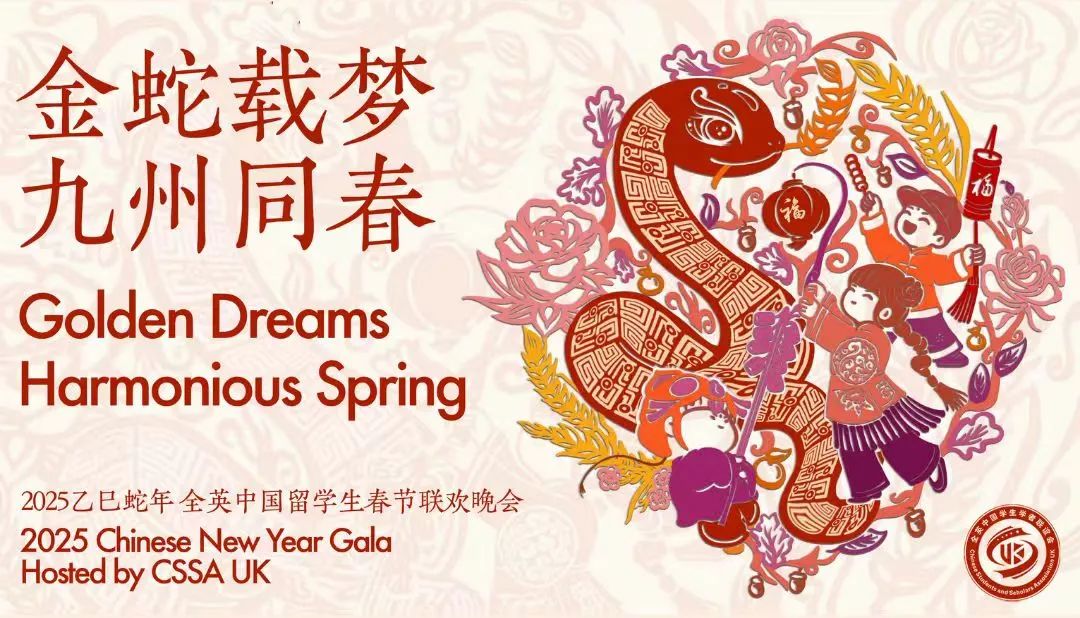 2025全英中国留学生春节联欢晚会,以“金蛇载梦 九州同春”为主题,通过精心编排的“金蛇迎春 盛世华夏”“福云万里 家国同心”“蛇舞四方 共创未来” 三大篇章,展开一场别开生面的视听盛宴,传递着辞旧迎新、送福迎春的美好祈愿 。中外艺术家们各展所长,凭借炉火纯青的精湛技艺和别具一格的独特创意,于时代的宏大画布上激情挥洒,勾勒出崭新时代的动人篇章。中英两国青年携手并肩,积极互动交流,向全球递出一张描绘双方携手前行、共创美好未来的蓝图。