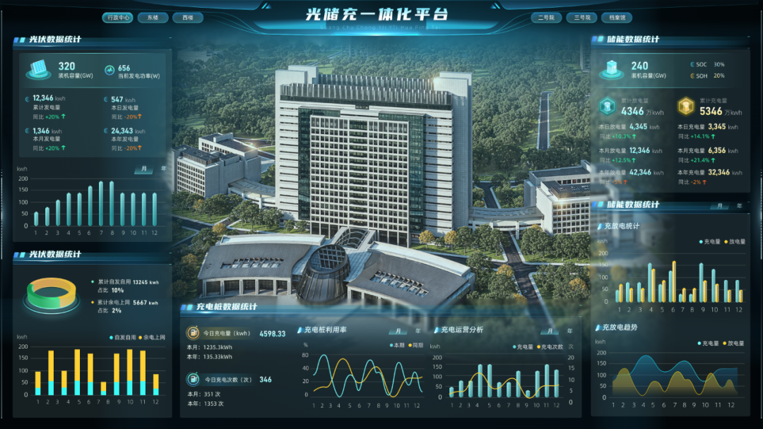 走进东莞市行政中心停充场站,便能看到光储充可视化大屏上一组组数字闪烁跳跃,实时记录着园区光伏发电、储能、新能源汽车充电等数据,让光储充运营管理一目了然。依托人工智能、云计算、大数据、物联网、3D高精度建模等技术手段,朗新科技集团为东莞市行政中心构建光储充一体化平台,该平台集数据采集、监控、分析和管理功能于一体,助力园区降低能耗、提升能效。