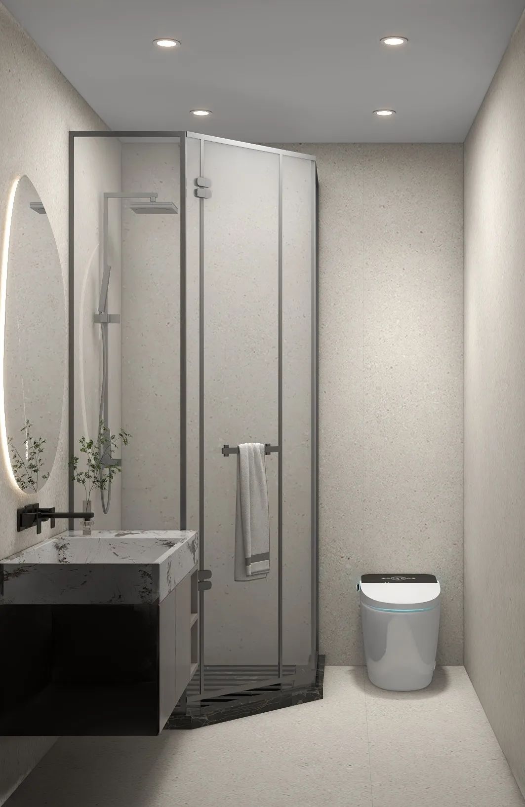 卫浴干湿分离,墙面具有磨砂质感,室内整洁而干燥