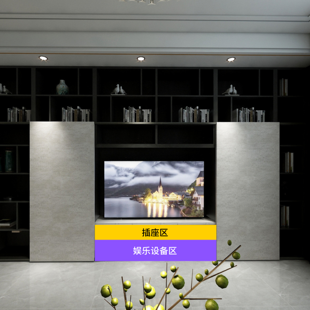 除去电视、柜体之外,我们还可以预留两个夹层,夹层与夹层之间不封死,留有串线区域。