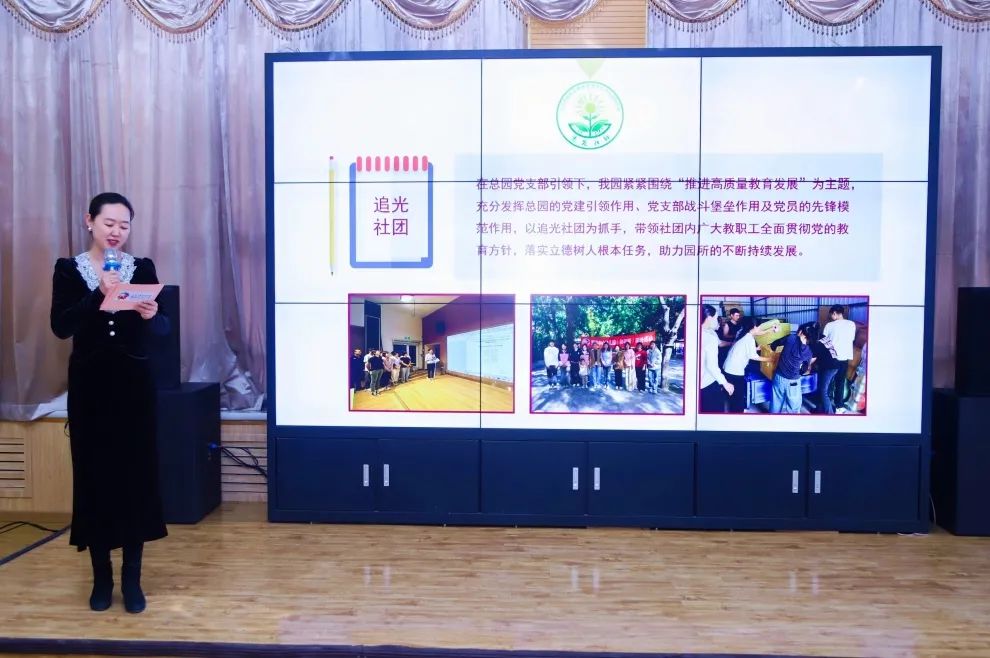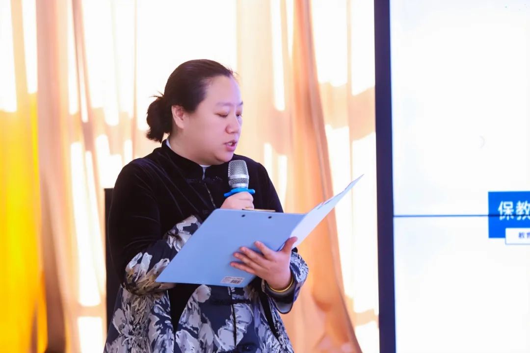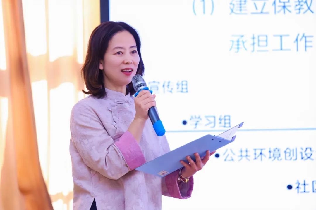 国资中心幼儿园(华翰北(C)园)执行园长唐社芳以《回望致远 以赴新程》为主题,介绍了园所在过去一年中,秉持着党建引领的核心理念,充分发挥党员先锋模范作用,全体教职工以昂扬奋进的精神面貌,全身心投入到自主游戏的实践与探索中。同时,园所的保教工作每个环节都精益求精,得到了全方位的优化与完善。值得一提的是,园所不仅为托班幼儿提供了更加优质、专业、贴心的照料与教育服务,托育工作在区域内的影响力也在持续攀升。