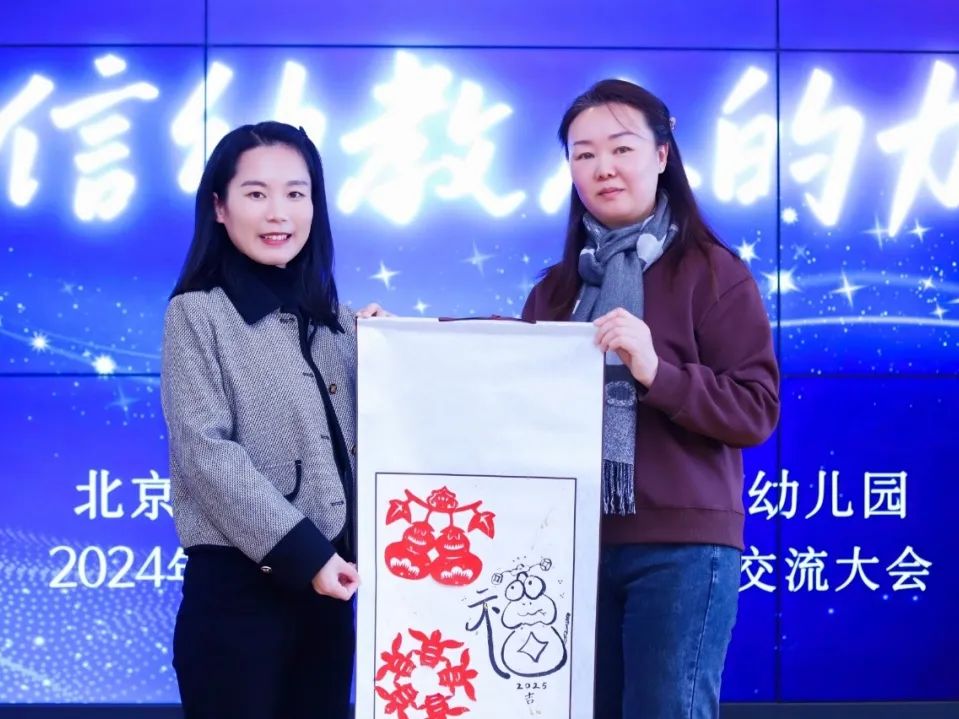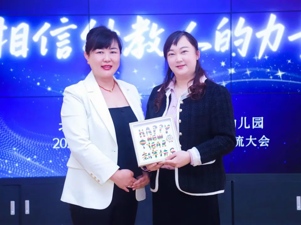在工作总结大会交流现场,各分园执行园长相聚一堂,互相赠予了精心准备的礼物。每一份礼物都承载着满满的祝福与期许。这些礼物不仅是对过去一年辛勤付出的肯定,更是对新一年的美好憧憬。