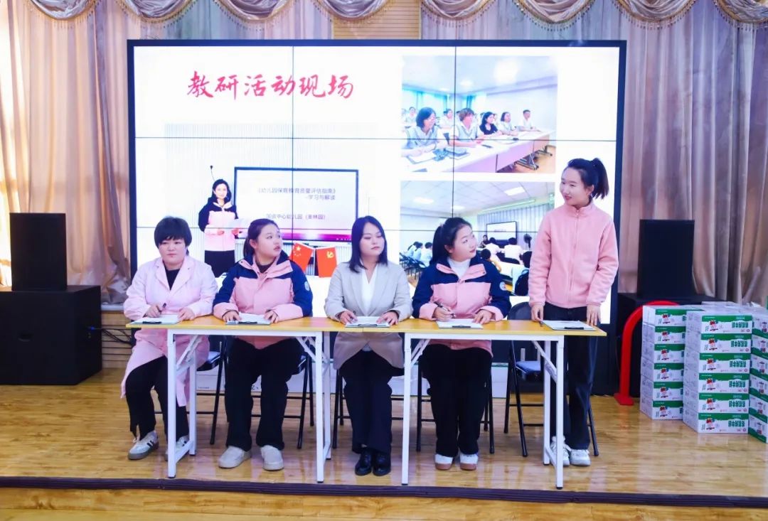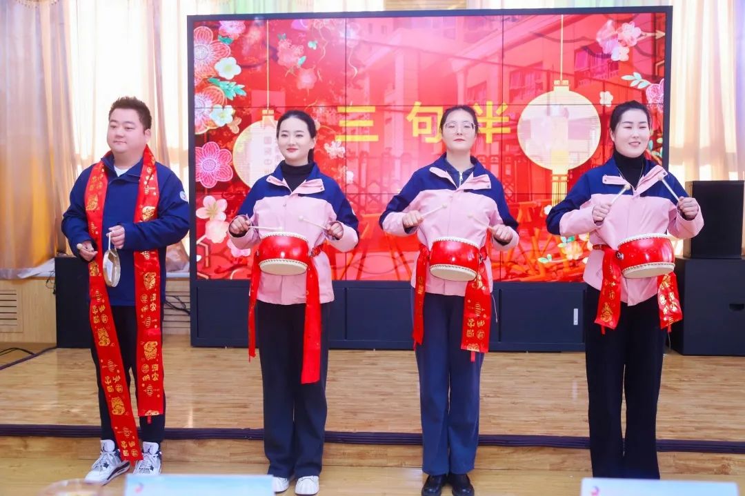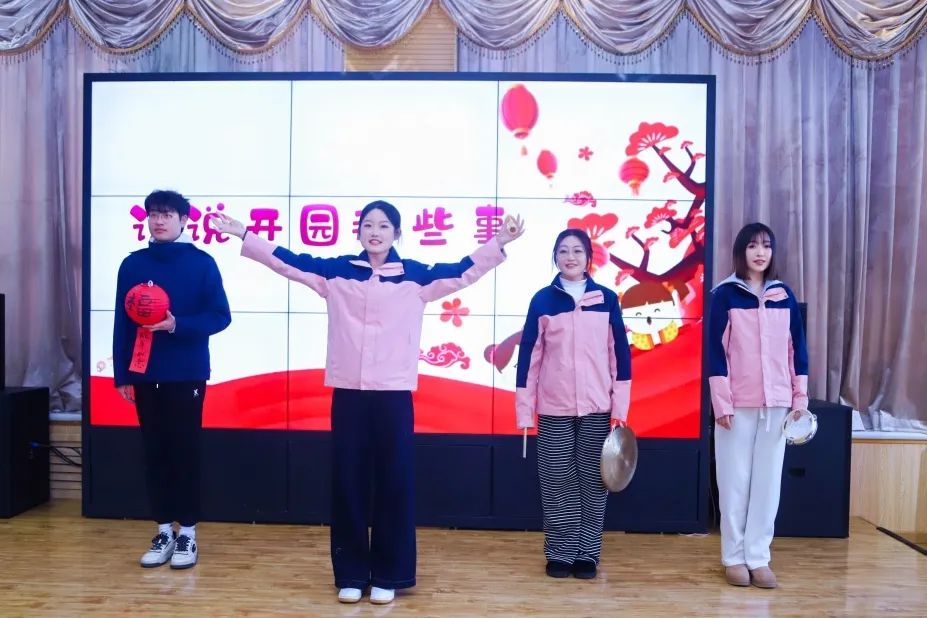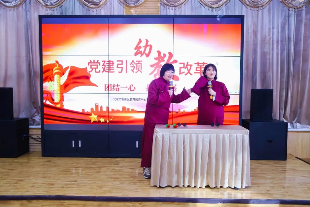国资中心幼儿园(嘉悦园)保教主任郭天娇、教师邢思博、武玉和行政后勤谢飞通过表演《三句半》,生动展现了嘉悦园一年来的奋进历程。在党建引领下,全园上下转变教育理念,坚持立德树人根本任务,学习落实《评估指南》,结合督导评估不断提升保教工作,同时高度重视安全工作,认真做好应急处置预案,严守食堂食品安全,全园教职工凝心聚力,稳步向前,共同推动了嘉悦园向着更高的目标迈进。