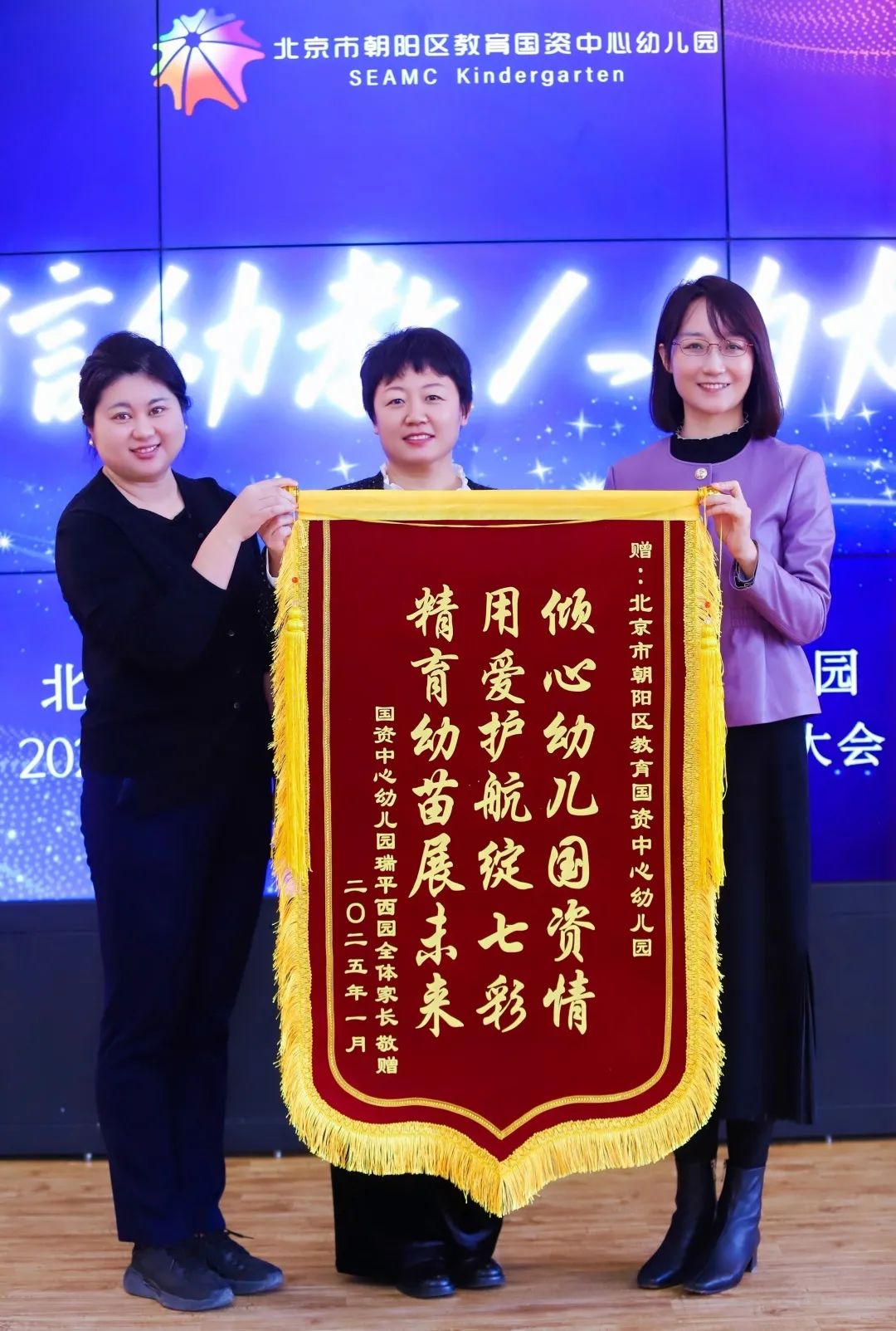 国资中心幼儿园(瑞平西园)执行园长高硕在《同心同行,在互信共进中成长》的主题汇报中提到,瑞平西园在2024年顺利通过了督导评估验收、平安校园评估检查以及食堂自营规范管理等重要工作,充分展现了园所在管理和运营方面的优异表现。面对出生率下降的招生挑战,全园干部教师团结一心,精心策划招生宣传,稳步开展招生工作,确保幼儿入园率的持续提升。班级教师苏盼盼则通过一个故事分享了在家园沟通方面的具体实践和宝贵经验。瑞平西园全体教职工齐心协力,将各项工作做得扎实、细致,得到家长高度认可。在活动现场,高园长还将家长赠送的锦旗郑重地赠予集团,以此表达对国资中心幼儿园集团的感谢。