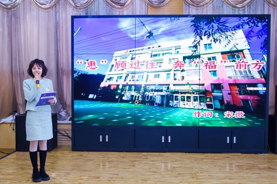 国资中心幼儿园(惠福园)执行园长彭梓涵以《“惠”顾过往 奔“福”前方》为主题介绍了园所一年来的发展与成就。保教主任郭悦、行政后勤宋微、教师曹子颜和保健医申利青一同演唱了一首由宋微老师改编歌词的歌曲。“风雨兼程不负星路点点,队伍稳定教师喜悦康健,孩子笑脸永是袅袅炊烟,凝聚起力量行稳致远,因为热爱奔赴美好明天!”他们用悠扬的歌声、饱满的情感,将园所这一年的工作进行了生动的讲述。从自主游戏、教学活动到后勤保障、食堂管理、团队建设,每一个细节都在歌声中娓娓道来。
