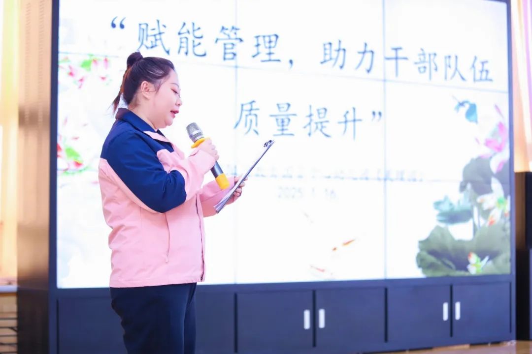 国资中心幼儿园(晨风园)执行园长娄鹏仙从“全面学习把准方向带好路,民主管理、注重沟通创和谐,目标导向、身体力行带队伍和立足本职,脚踏实地提质量”四个方面进行了全面的回顾与梳理。新的一年,娄园长表示晨风园将继续以热情激发、以真诚感化、以责任心担当,秉持实干创新的精神,为园所的发展谋篇布局,开启崭新篇章。最后,晨风园教师刘竹青、杨旭、贾琼和于婷婷通过表演三句半,生动地展示了园所在资产管理方面的“六字诀”,直观地呈现了园所在资产管理方面的智慧与成果。