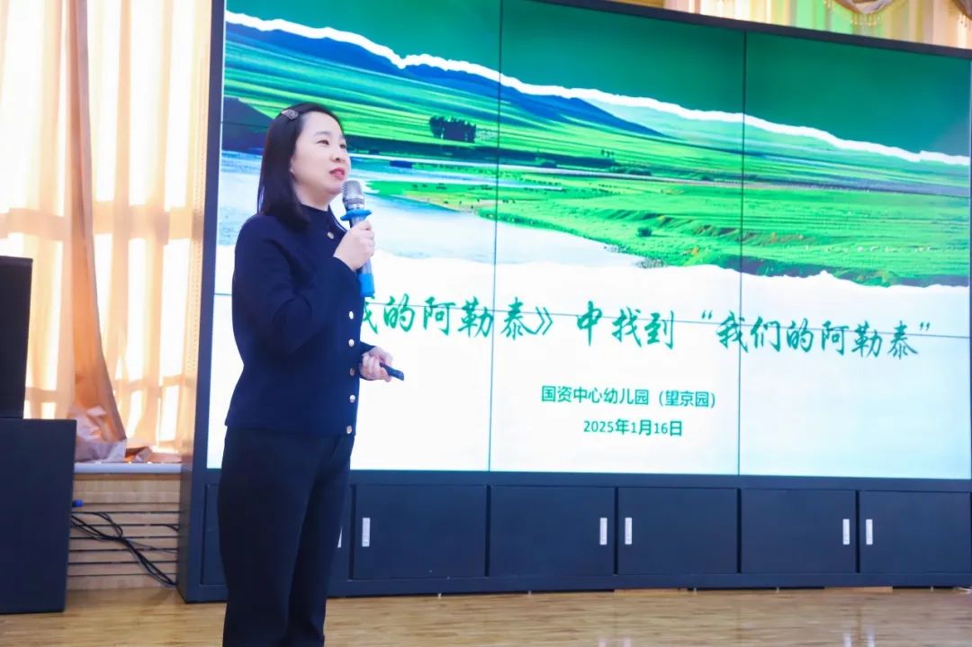国资中心幼儿园(望京园)执行园长张楠以《我的阿勒泰》一书为切入点,巧妙地将其与幼儿园的日常工作紧密相连,从幼儿、教师、家长这三个关键维度进行了阐述。在她眼中,幼儿园内的一草一木、一砖一瓦,以及每组精心挑选的活动器材,都宛如书中那充满魅力的“阿勒泰”,共同勾勒出幼儿园独特的底色,承载着孩子们的欢声笑语与成长记忆。张园长表示,全园教职工将继续秉持初心,深耕这片充满希望与梦想的“阿勒泰”,用心浇灌幼儿教育这片沃土,让幼儿园成为孩子们快乐成长的乐园。