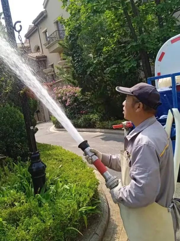 远洋服务把抗旱浇水保苗作为当前重点工作,将浇水和灌溉作为绿化养护管理中一项常态化、精细化工作在落实,定人、定时对小区绿植展开浇水灌溉作业。浇水时,物业工作人员为避免高温时段浇水灼伤植物,分别在早、晚时间段对树木集中浇水,减少水分蒸发,并且根据苗木的喜水性,以及生长的区域位置等特点进行浇水,确保植物正常生长,为绿地“解渴降温”。
