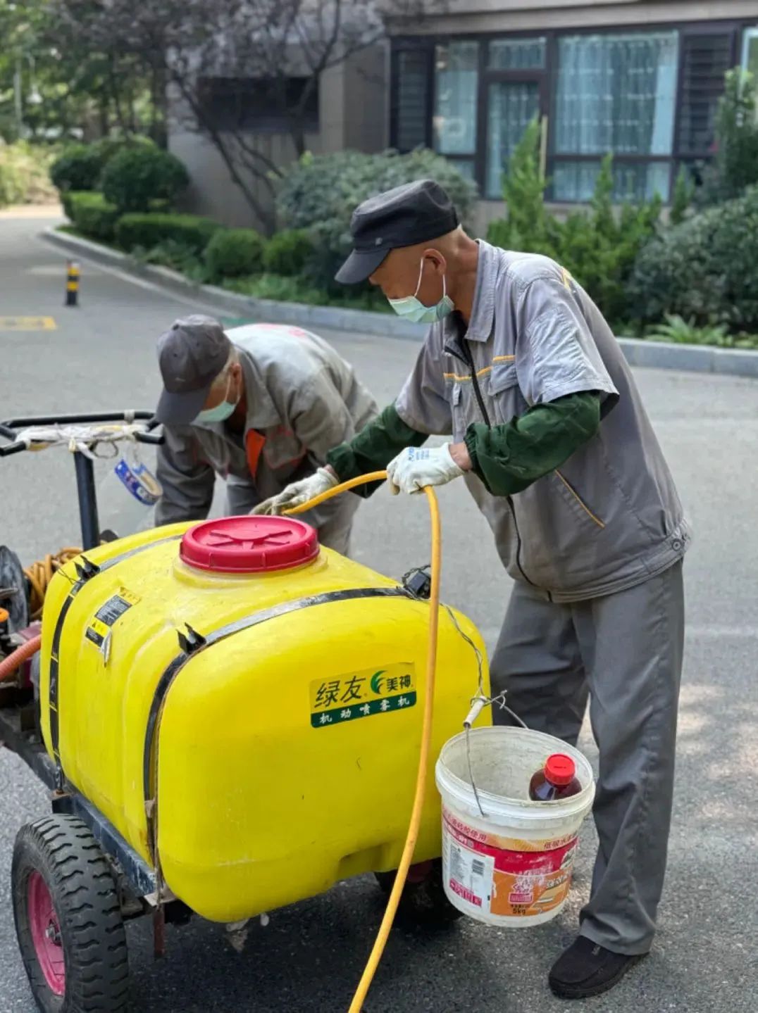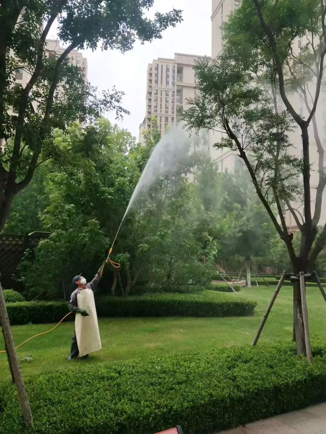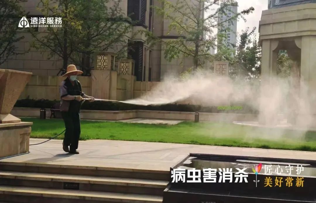 近日,气温升高,各种虫害也日益增多,为了保护小区树木不受虫害影响,确保小区环境的整洁,远洋服务集中开展了绿化专项消杀工作,绿化师傅们采用了专业的喷洒设备和环保型农药,定期对小区内的绿化带、步行道进行了全面的农药喷洒。