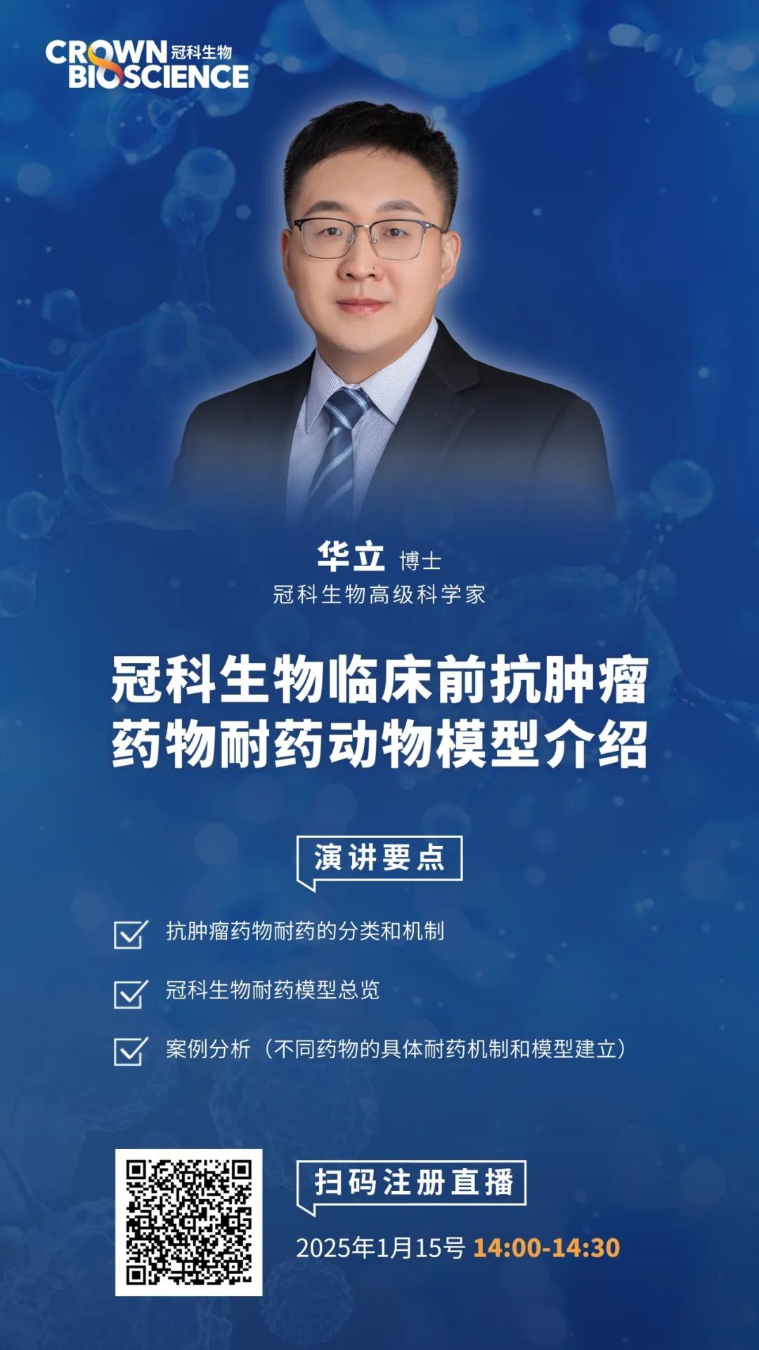 本期课程将带您了解冠科生物构建的临床前抗肿瘤药物耐药动物模型,涵盖PARP inhibitor、RET inhibitor、KRASG12C inhibitor等。
