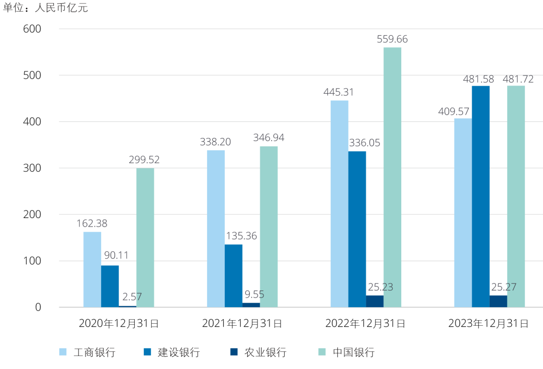 图:全国四大商业银行2020年至2023年房地产行业不良贷款余额