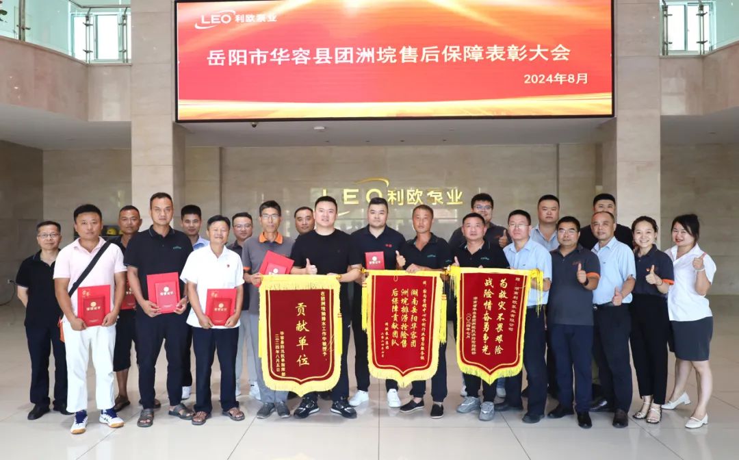 8月7日,岳阳市华容县团洲垸抗洪抢险售后保障表彰大会在湖南基地举行。利欧泵业集团副总裁王腾伟、湖南泵业常务副总经理马育兵、人力资源部副总经理潘灵松、水利电力行业区域销售总监以及湖南基地和国内营销中心的小伙伴们出席此次会议。会议对在抗洪抢险救援工作中表现突出的个人进行表彰,并对他们的英勇事迹进行了回顾和总结。