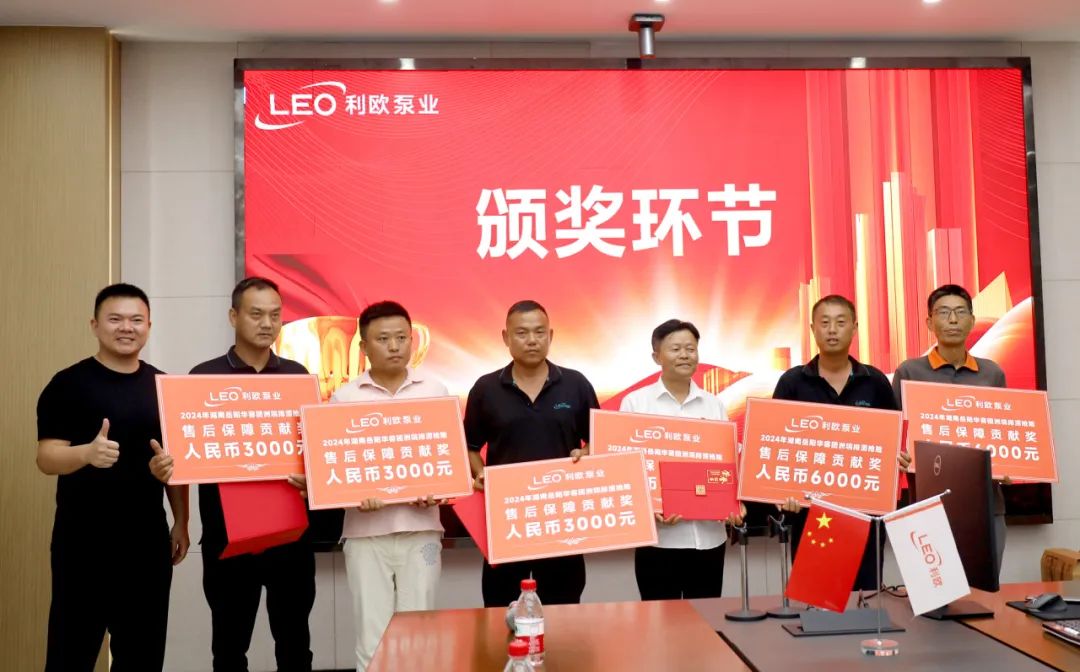 会议还对抗洪抢险救援工作中获得利欧泵业集团“2024年湖南岳阳华容团洲垸排涝抢险售后保障贡献奖”的先进个人进行了表彰。