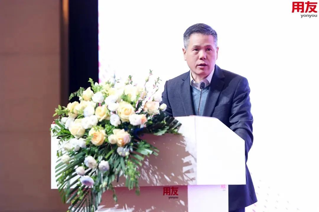 上海国家会计学院党委副书记、院长卢文彬教授为大会致辞时指出,生成式AI与大模型技术的革新正重塑财务领域,财务已逐步成为企业应对不确定性、增强全球竞争力的核心智慧源。这一趋势下,上海国家会计学院构建了“技术-应用-战略”全方位培训体系,将通过与用友等企业的深度合作,持续培育具备数智思维、精通先进工具的复合型财务人才,共促财务由“后端支撑”迈向“战略核心”,为中国企业高质量发展注入强劲动力,共创智慧财务新篇章。