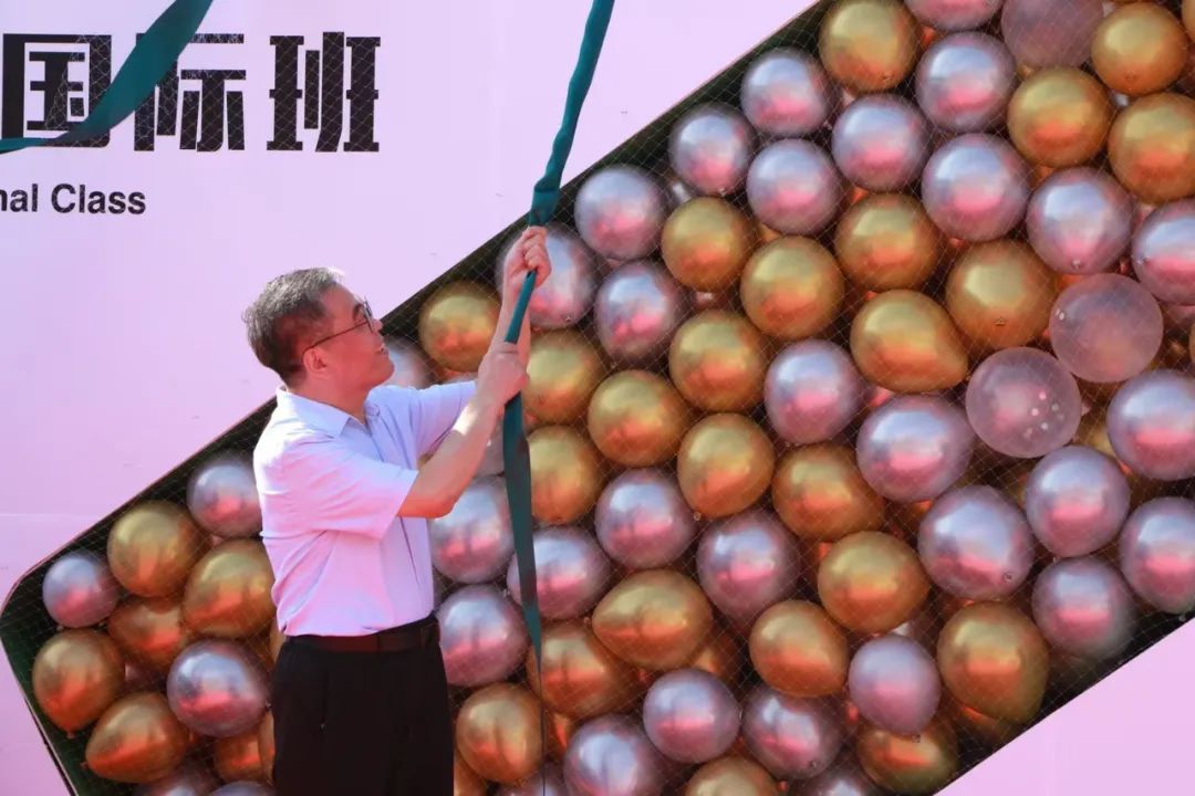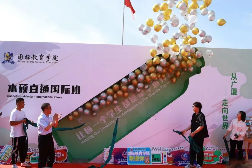 新生代表们穿过国际教育学院精心布置的“通往世界名校之门”,与领导们一同揭幕“巨型许愿瓶”,携手放飞气球,让梦想在此远航。一颗颗小小的气球代表着同学们的梦想,在此盼望他们从广厦出发,以国际教育学院为起点,勇敢地奔往未来的方向。