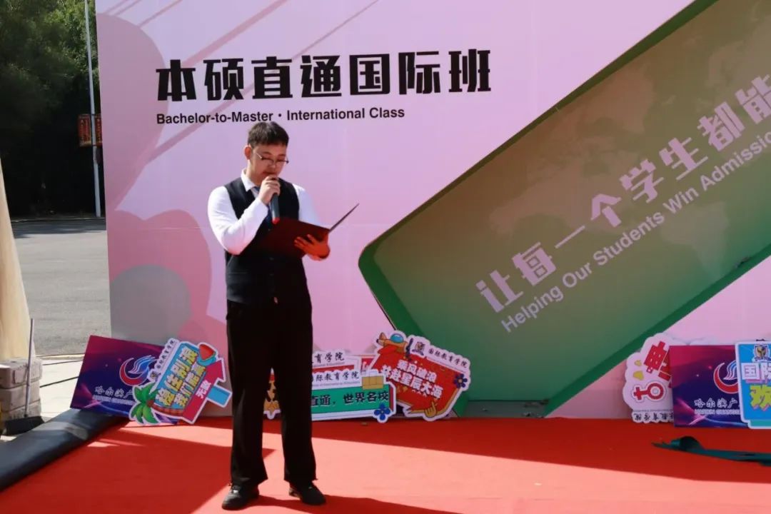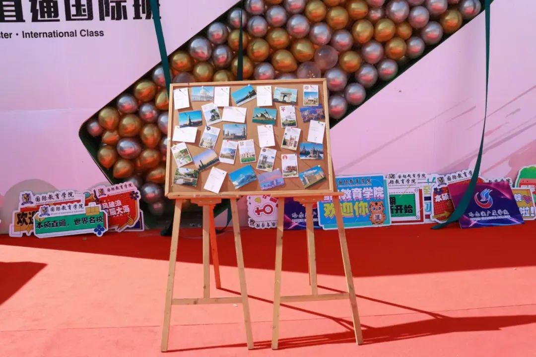 和煦的阳光,是学业研途的信差;崭新的面孔,是国际教育学院的未来。哈尔滨广厦学院充分营造国际化氛围,国际教育学院迎新场地位于全校迎新区域中心位置,以“通往世界名校之门”为主题景观,校内随处可见本硕直通项目宣传、合作院校介绍、留学优秀学子展示等国际化元素。现场,外教对前来报到的新生进行口语测试,互送明信片,新生和家长们与外教积极互动。