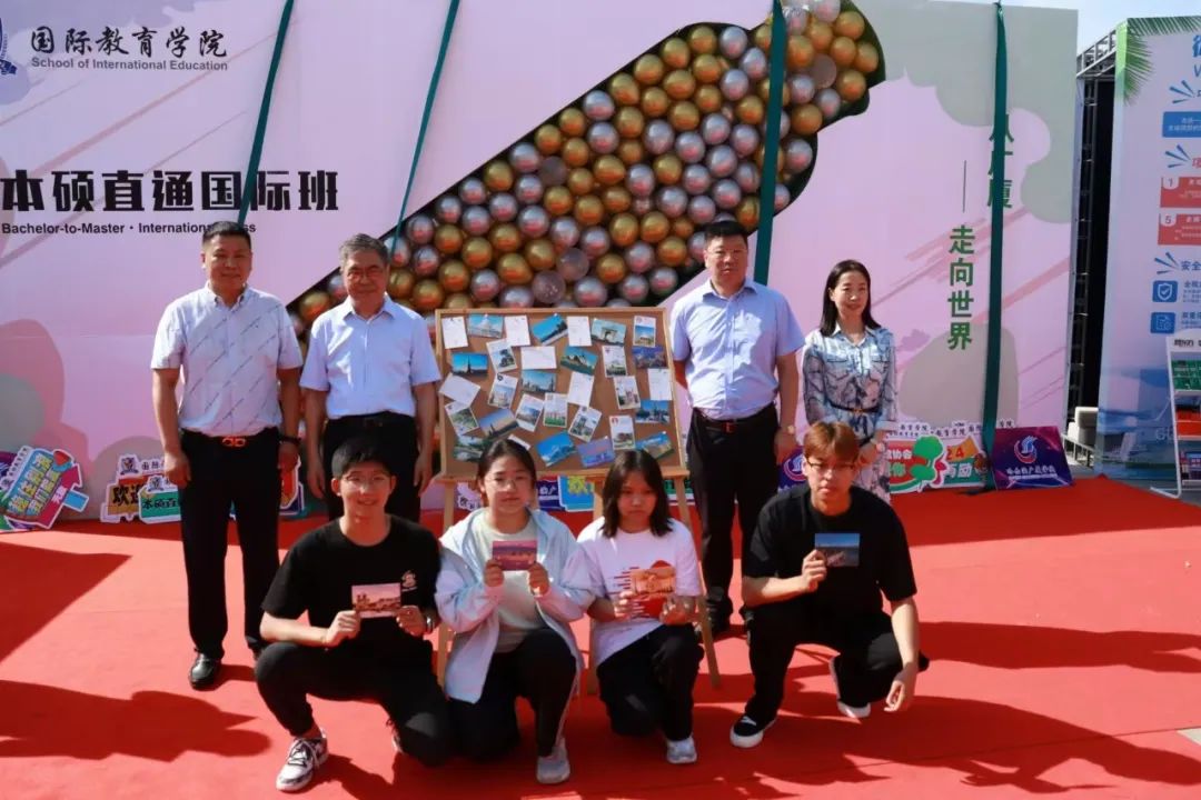 校领导为2024级国际班新生代表颁发录取通知书,祝愿新生们借此“领航计划”扬帆远航;并为同学们在世界名校明信片上写下寄语,希望在四年后能够收到同学们从世界各地寄回的喜讯。