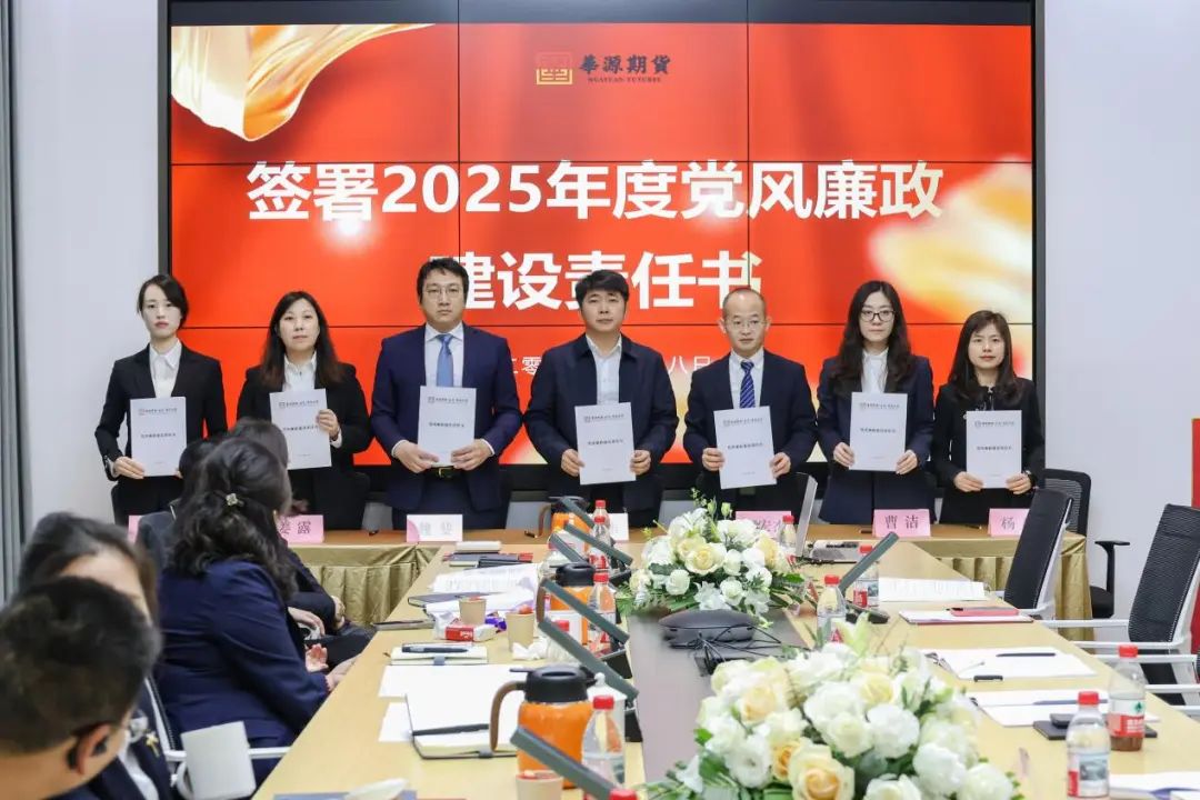 会议对2024年度华源期货先进部室及个人予以表彰,颁发荣誉证书,优秀代表上台分享经验。紧接着,公司经营班子签署党风廉政建设责任书与年度目标责任书,细化年度指标至各条线,做到人人担责、层层落实。