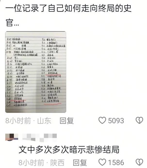还有人直接在评论区进行阅读理解,说这是一位史官记录了自己如何走向终局~