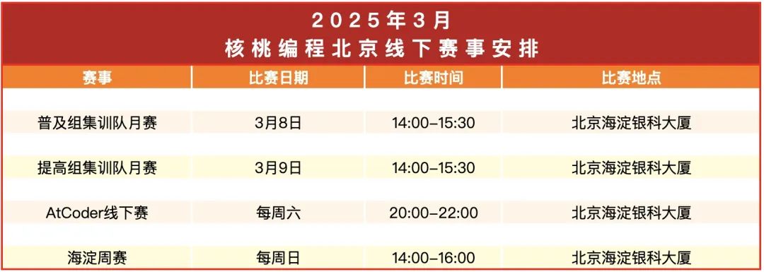 万众瞩目的海淀小信奥复赛已定于3月9日鸣锣开战,本周末即将拉开帷幕!
