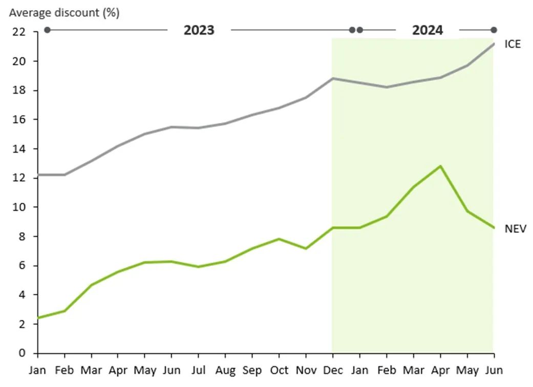 Chart: Average discounts on passenger cars by different power type, Jan-June 2024