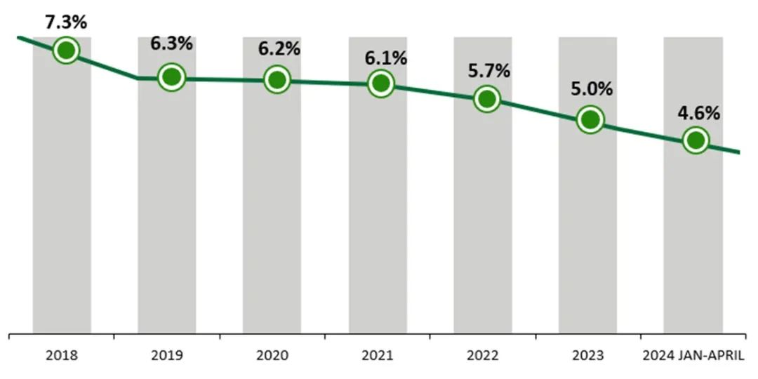 At the same time, price reductions have a negative impact on profit health and brand image. For example, in the first four months of this year, the sales profit margin of the automotive manufacturing industry was 4.6%, lower than the year-end level of last year (5%), and significantly lower than 2018 (7.3%). At the company level, only leading NEV companies have maintained high revenue and profit growth rates, while most traditional car companies have experienced a decline in gross profit margin and net profit margin. The price war has also dragged down the financial performance of dealership groups.