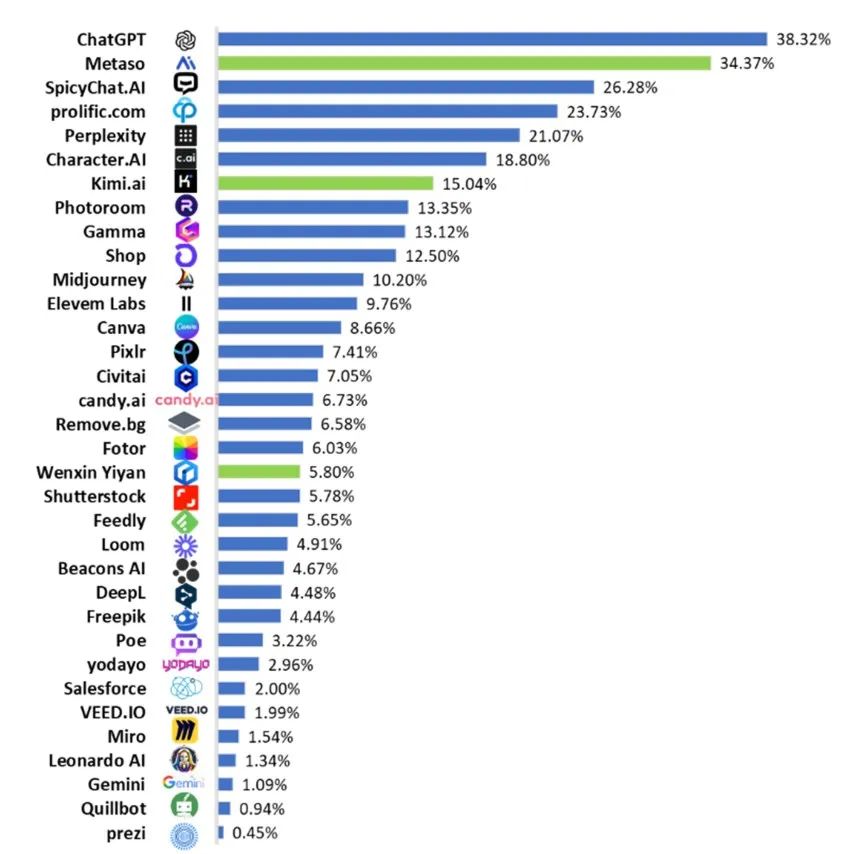 Chart: Month-on-month growth of traffic volume of global top-50 AI products