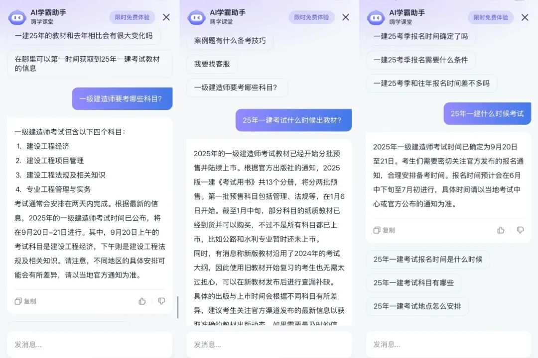 无论是考试信息的查询,还是对考试节点的困惑,AI学霸助手都能随时响应。