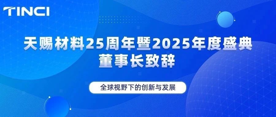 全球视野下的创新与发展尊敬的各位同仁,亲爱的天赐人:大家好!在这辞旧迎新的时刻,我们欢聚一堂,共同庆祝天赐材料成立25周年。这既是天赐材料的高光时刻,更是我们每一位天赐人的荣耀盛典。下面请允许我讲几句心里话。我想讲的第一句心里话是:精细化工材料是天赐坚定不移的生命线。在精细化工的道路上,全体天赐人心无旁骛、气定心平,这一坚守就是25年。 25年前,我们天赐从一间小小实验室和单一的日化领域开启了精细化工之路。随后,2004年开始涉足锂离子电池材料领域,进入新能源赛道;2007年九江天赐正式成立,现在已经是全球最大的锂电池电解液核心原材料(液体六氟磷酸锂)制造基地;2014年...